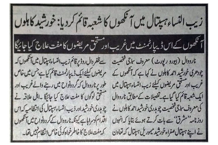“Sughra Khurshid Memorial Hospital Welfare Society” will work as an independent, non-government, and non-profitable organization.